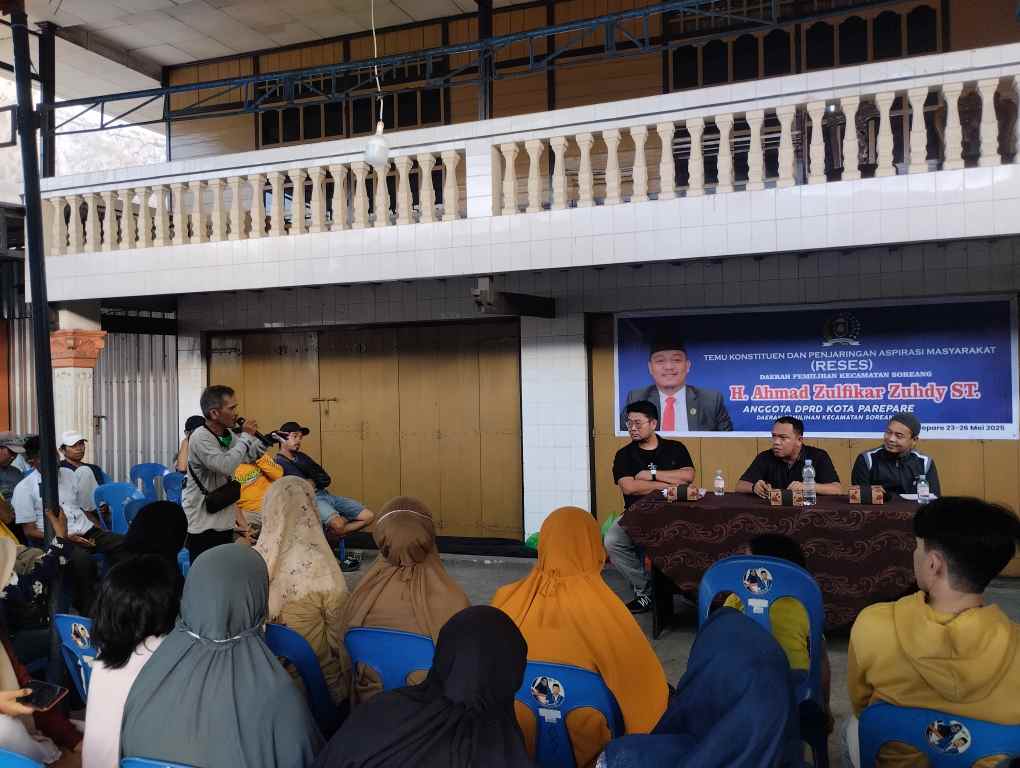 PAREPARE, — Anggota DPRD Kota Parepare, H Ahmad Zulfikar Zuhdy ST, menggelar kegiatan reses atau temu konstituen di daerah pemilihannya, Kecamatan Soreang, pada Jumat (24/5/2025). Acara yang berlangsung di rumah warga Jl Ahmad Yani tersebut dihadiri ratusan warga dari berbagai kelurahan.