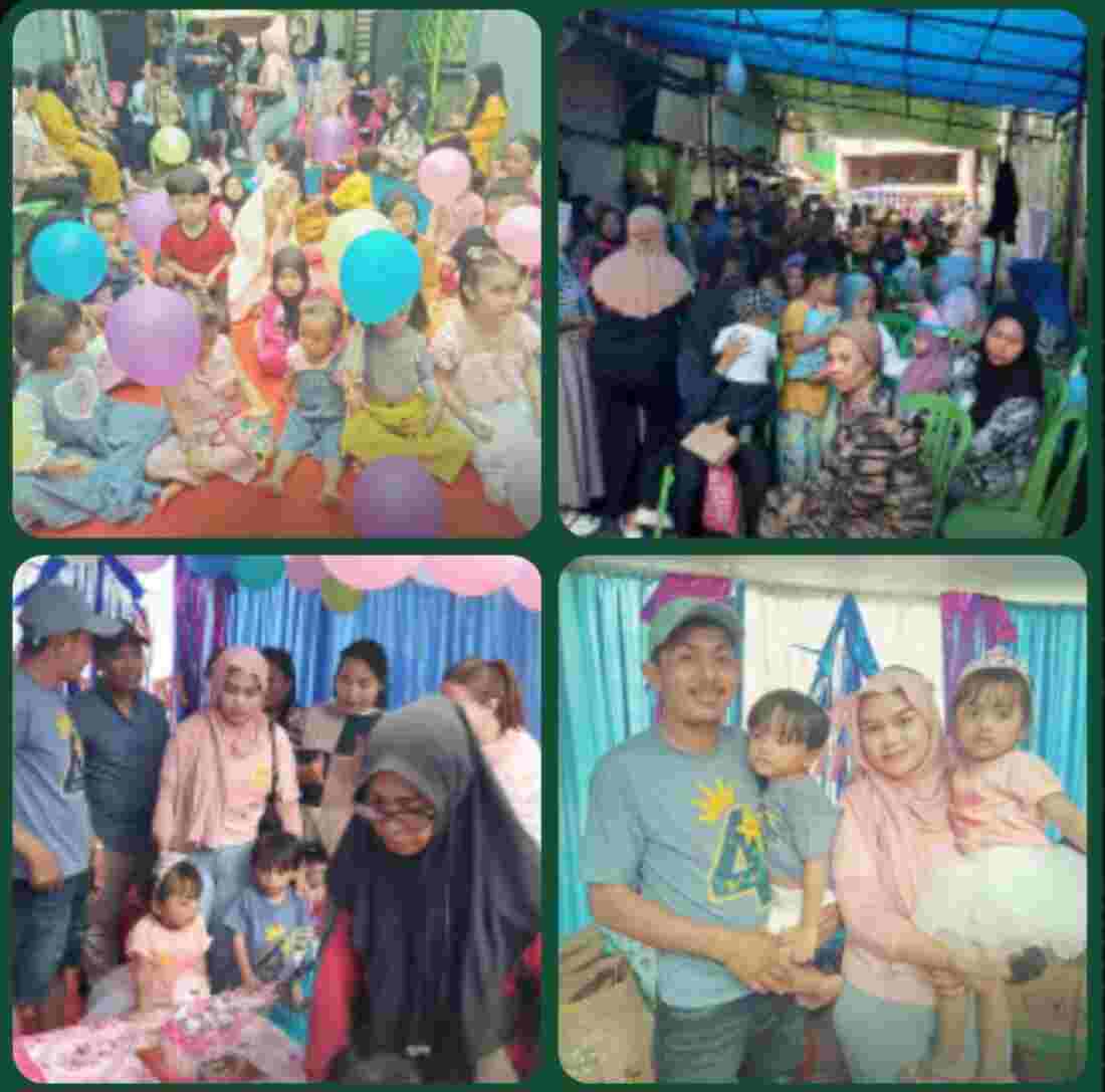 Perayaan ulang tahun anaknya dihadiri oleh keluarga, tetangga dan teman kerja yang dilaksanakan di Jl. Korban 40.000 Jiwa Lorong 5 Rt 09 Rw 03 Kelurahan Rappojawa Kecamatan Tallo, Kota Makassar, hari Minggu sore, 26 Januari 2025.