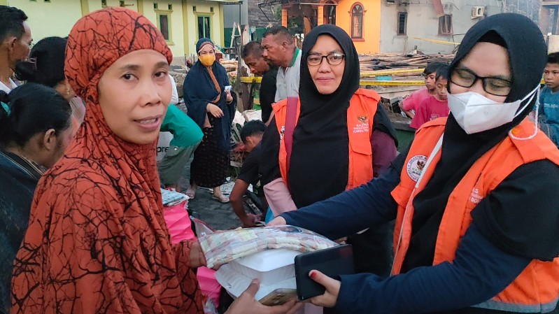 Bantuan berupa beras, telur, sembako, mie insrant, air mineral, piring, gelas, sarung, nasi kotak dan es buah diserahkan kepada masing-masing korban kebakaran dengan tertib di lokasi kebakaran.