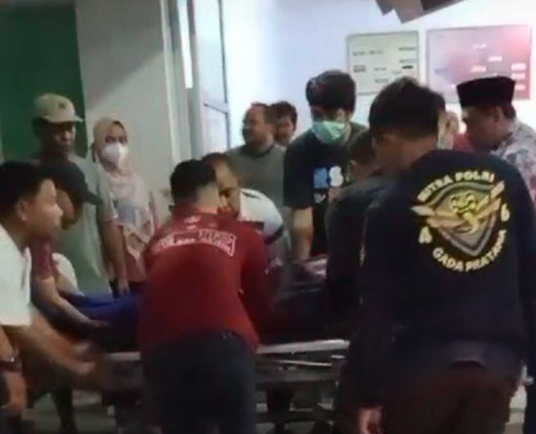 Saat di rumah sakit Majene, sejumlah kerabat almarhum dan ponakan tampak bersedih dan mengangkat almarhum ke mobil jenazah.