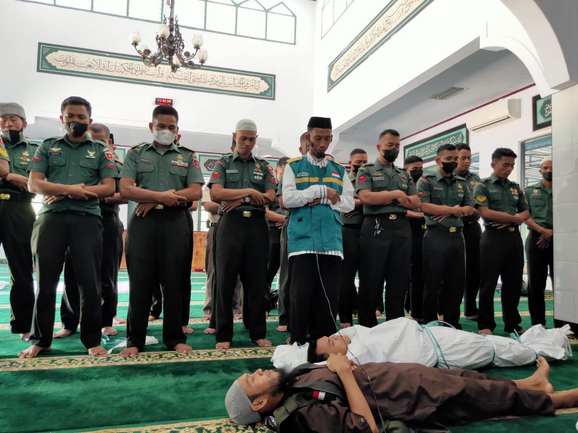 Kali ini para prajurit melakukan praktek penyelenggaraan jenazah secara langsung, mulai dari pembuatan kafan untuk jenazah, memandikan jenazah hingga sholat jenazah.