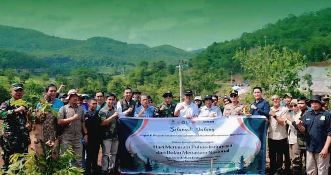 Dr. Setiawan Aswad Bersama Forkopimda dan Masyarakat, Melaksanakan Penanaman pohon sukun pada area spot yang memiliki fungsi ekologis yang cukup sensitis disekitar bendungan pamukkulu Kabupaten Takalar, berbatasan dengan hutan lindung yang tidak bisa disentuh oleh masyarakat dan kawasan perhutani sosial yang hari ini sudah mendapatkan izin resmi untuk dikelolah masyarakat sebesar 90 hektar.