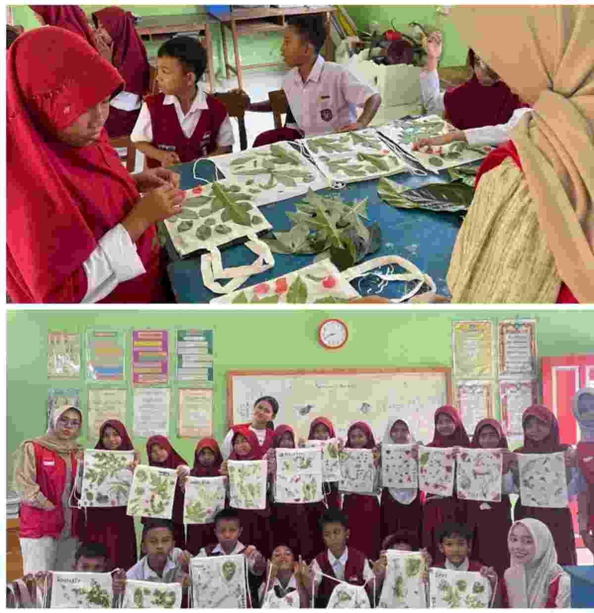 “Kepada siswa sebanyak 18 orang ini diperkenalkan teknik ecoprint, yaitu seni mencetak motif alami dari daun dan bunga ke media kain,” ujar Nur Balqis.