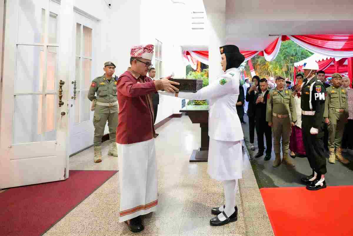 Makassar – Rangkaian upacara penaikan dan penurunan bendera dalam peringatan Hari Ulang Tahun ke-80 Kemerdekaan Republik Indonesia (HUT ke-80 RI) di Lapangan Rumah Jabatan Gubernur (Rujab) Sulawesi Selatan (Sulsel), berlangsung khidmat dan lancar, pada Minggu, (17/8/2025).