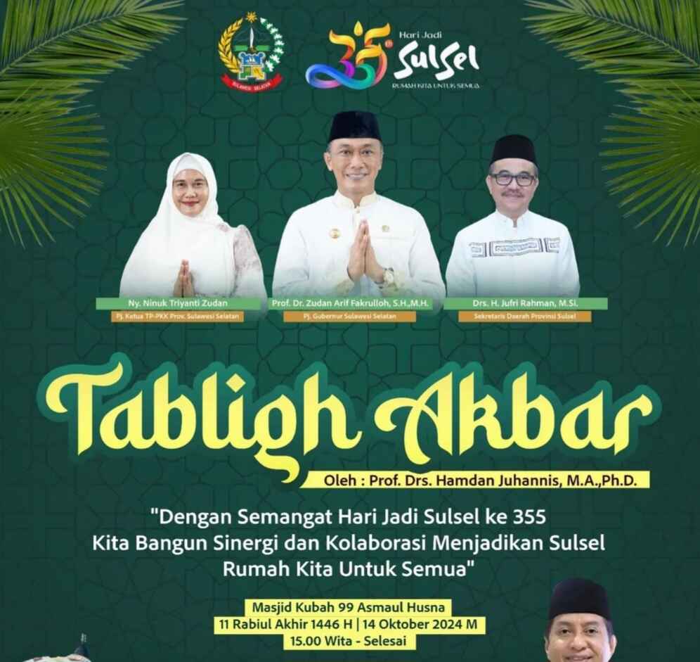 Poster Kegiatan Tabligh Akbar dalam rangka Hari Jadi Sulsel Ke 355. (Foto ist.)