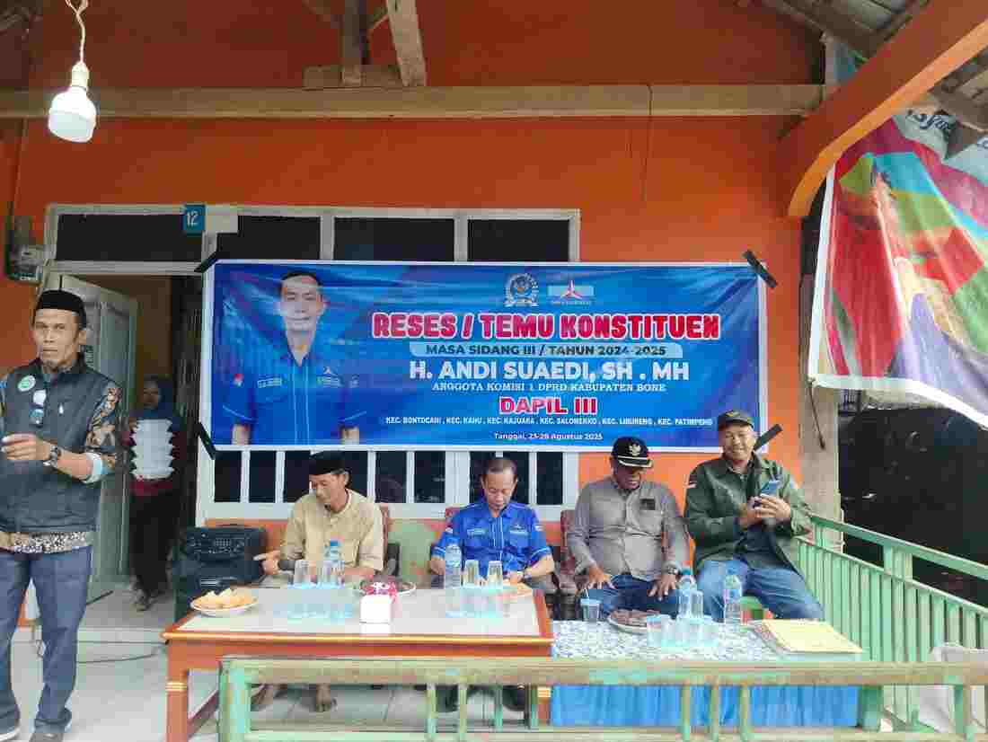 BONE.99news.id. — Anggota DPRD Kabupaten Bone H.Andi Suaedi SH.MH melaksanakan Reses Masa Sidang III Tahun 2025 bertempat di Desa Biru, Kecamatan Kahu, Kabupaten Bone, Minggu (24/8/2025).
