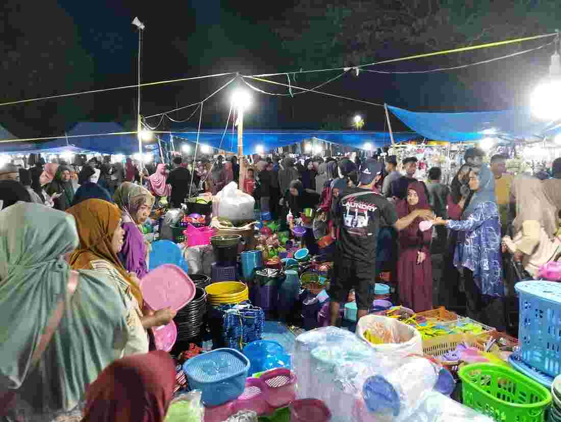hiburan keluarga dengan berbagai wahana permainan yang membuat suasana semakin semarak. Para pengunjung menikmati suasana malam yang meriah, sementara pengusaha lokal sibuk melayani pembeli yang berdatangan.