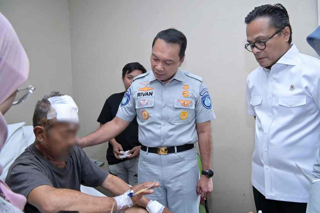 menjenguk pasien yang tengah dirawat di Radjak Hospital akibat kecelakaan di Tol